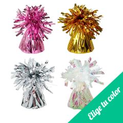 -Pesas para sujetar los globos atados con cinta ribbon y que no salgan volando. Puedes hacer ramilletes de globos que crean un efecto muy bonito y que fijas a una pesa de color de 170grs. , o pesas con forma de estrella. También hay pesas de 12grs. para que un solo globo quede suspendido que igualmente hace un efecto visual muy bonito.